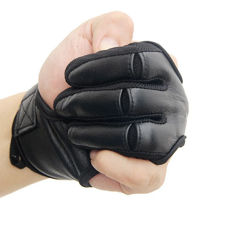 Review 3 Finger Gloves Black Leather High Elastic Hand Protection Archery Protective Gloves M